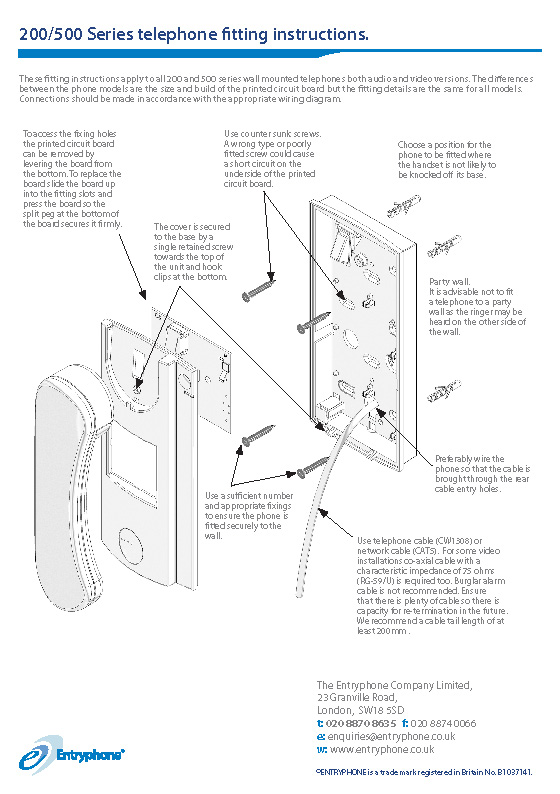 Free technical support 020 8870 8635 or service@entryphone.co.uk